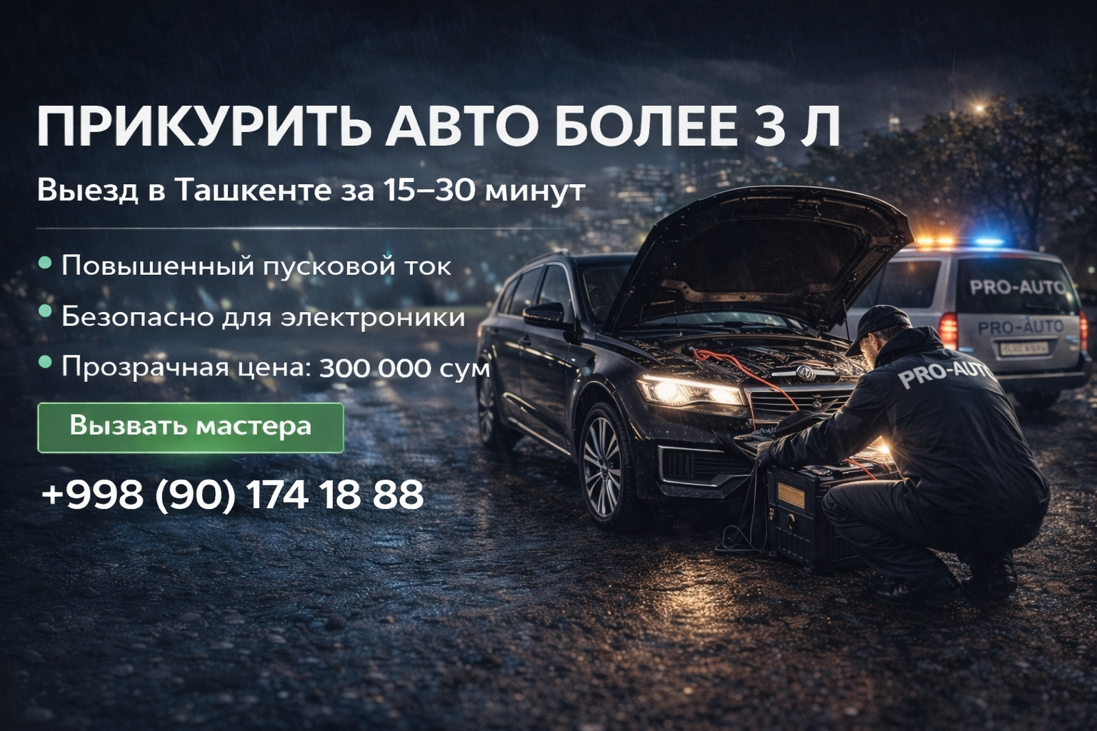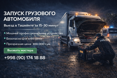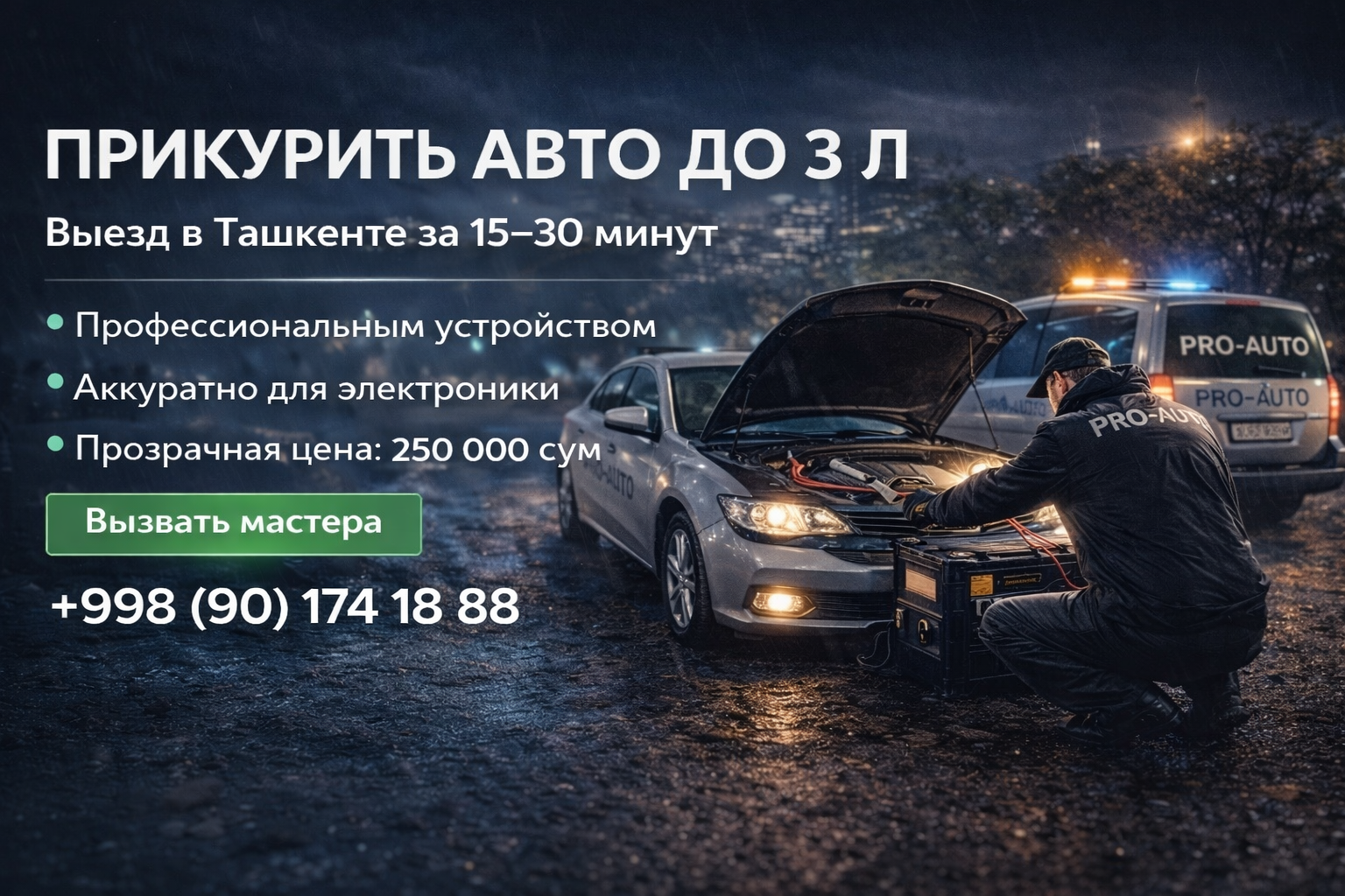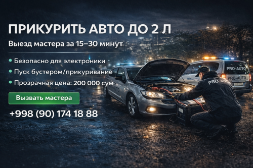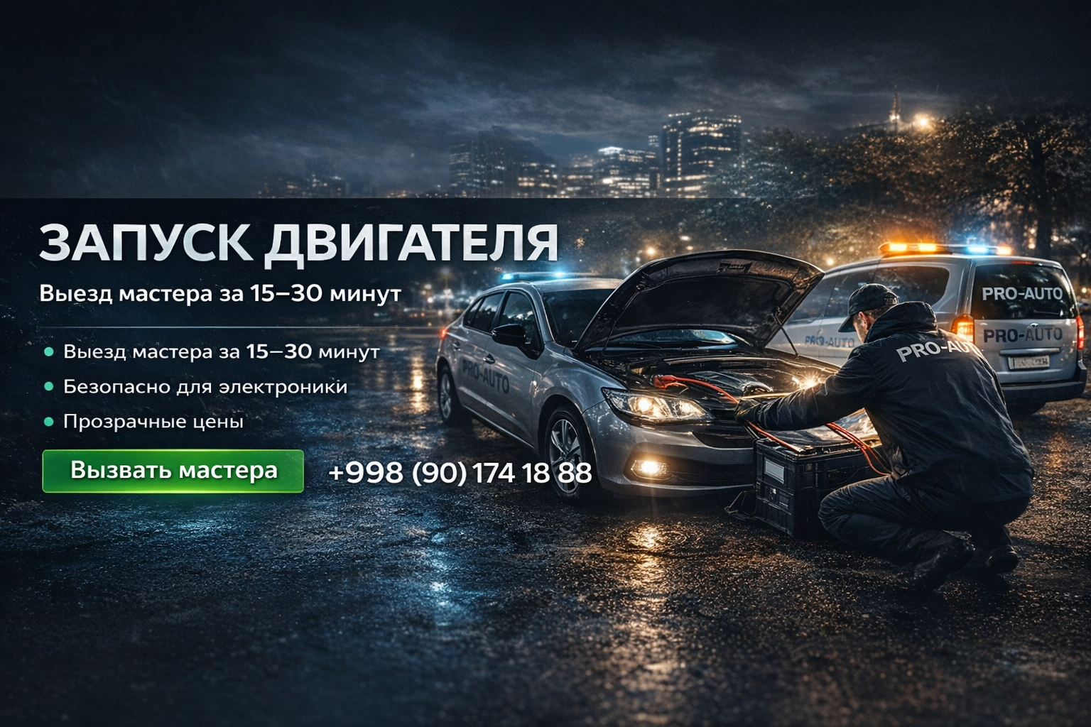 PRO-AUTO поможет быстро прикурить автомобиль и запустить двигатель в любой точке Ташкента. Выезжаем круглосуточно, решаем проблему за 15–20 минут.